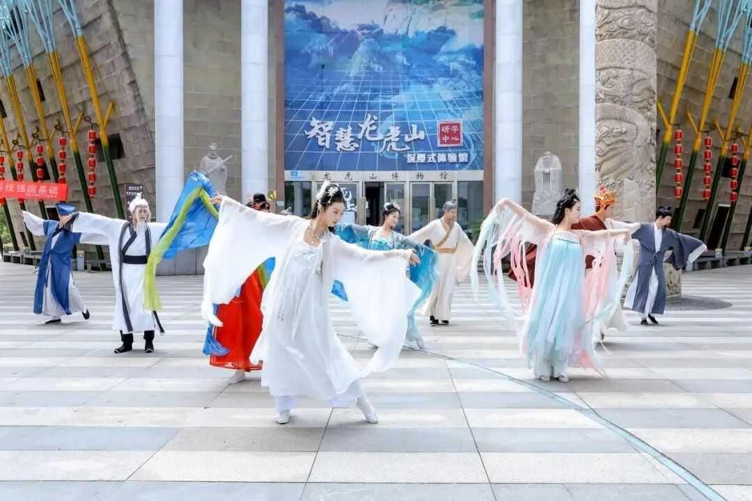 新版微表演打破固定舞台限制,将文化展示融入游览动线。象鼻山入口处,身着素色道袍的演员以“行道”为主题起舞,水袖翻飞再现《龙虎山志》传说;浴仙池旁,“修道”环节同步开展,演员持拂尘演示道教养生功法,还邀游客体验 “八段锦”;上清古镇 “得道” 环节尤为吸睛,演员化仙沿街巡游,邀探访团合影并引导至天师府,古戏台及街道同步上演仙女群舞,古境与演出相映成趣。这些微表演让游客沉浸式感受道韵,形成“体验-记录-分享”链条,完美契合 Z 世代需求。