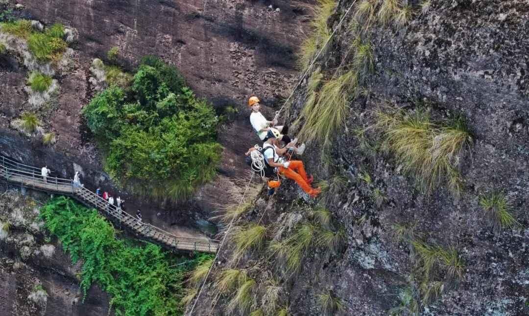 更关键的是,项目坚持无痕操作,用原有大树固定装备,不破坏岩壁分毫。这种“保护与利用并行”的思路,破解了资源型景区想创新怕破坏的普遍顾虑。